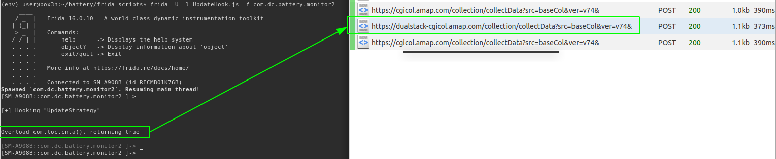 Hooking the application, our Frida script emmits the deobsfucated strings: