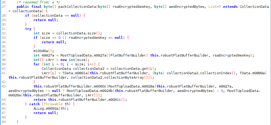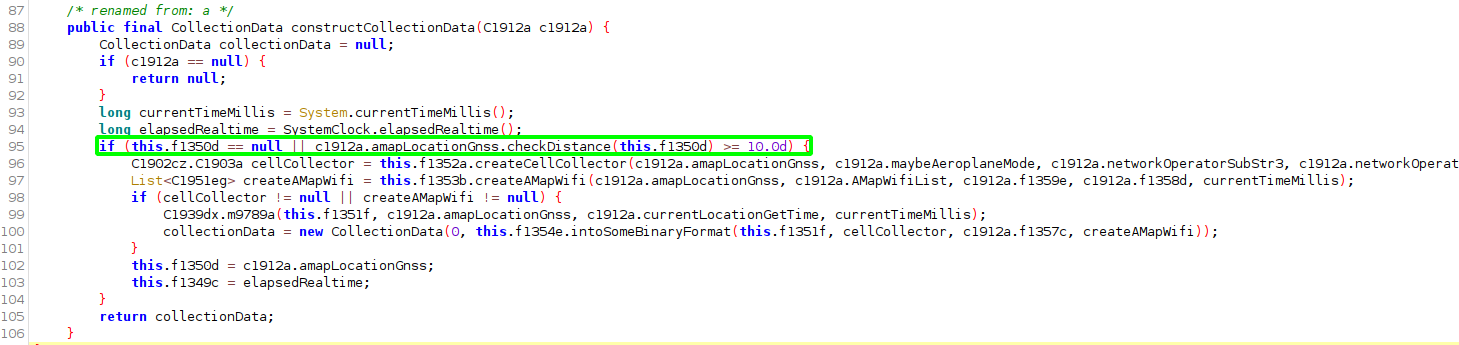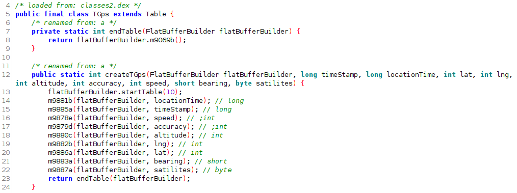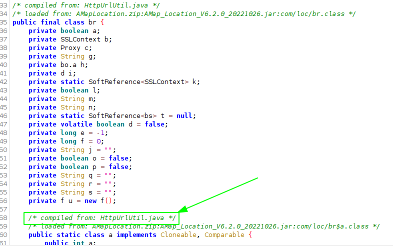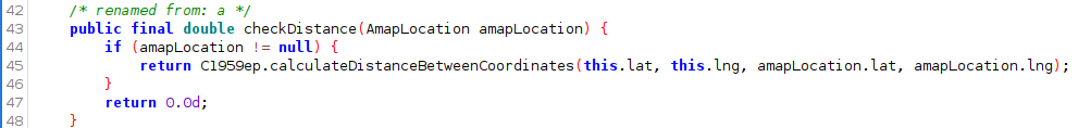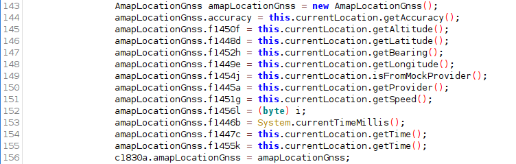 AMap have performed some light obsfucation by removing all variables and method names from the Java library. Fortunately class names are recoverable, JADX’s ‘deobsfucation’ feature does the trick. Recovering the original class names gives us huge leverage to understand the primary functionality of each class and significantly reduces the time and effort to reconstruct parts of the decompilation by manually renaming variables and method names.