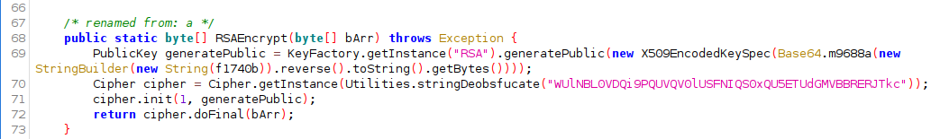 The cipher mode string is obsfucated using the same routine to conceal the android permissions as discussed earlier. It’s a bit of an odd one