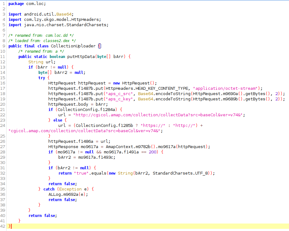Everything analysed in this section comes under the class path com.loc which was renamed from com.amap.api.
