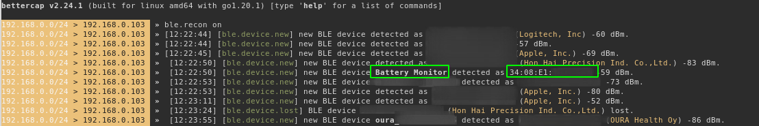 Bettercap’s BLE module offers a quick way to scan and enumerate BLE devices: