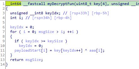 plaintext[i] = key[key_idx] ^ ciphertext[i]