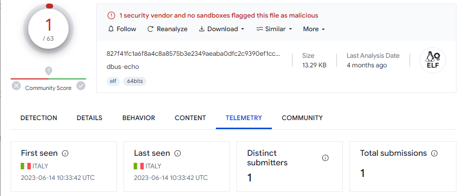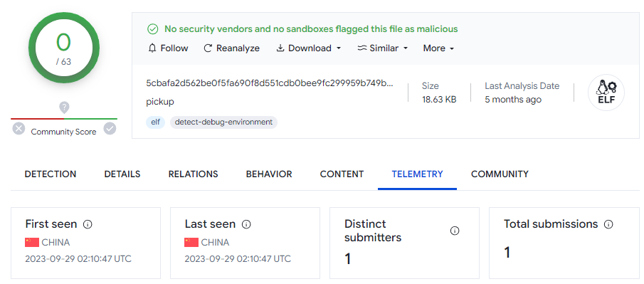 At the time of writing, both samples have been uploaded to Virustotal in late 2023.