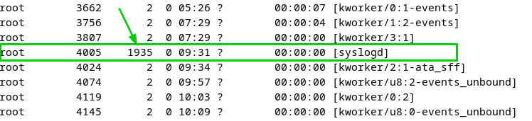 kthreadd. In the following screenshot thePPIDof the backdoor is1935, while the other kernel thread parent IDs are2: