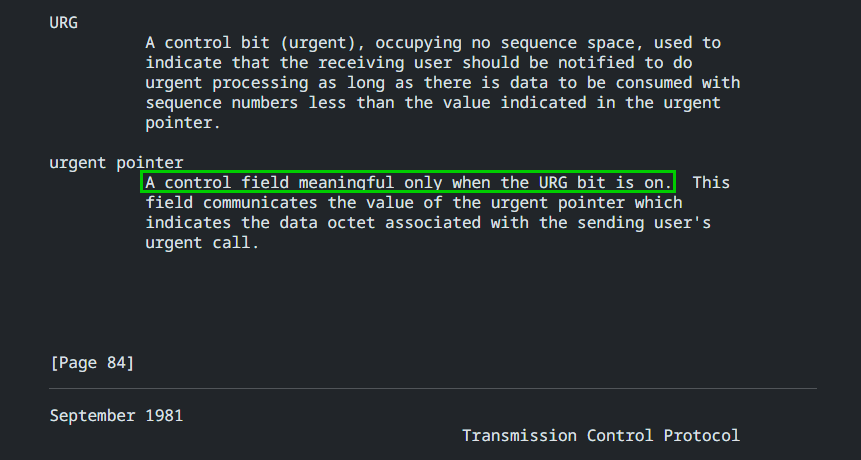 RFC0793 states that the urgent pointer has no meaning if the URG flag is not set: