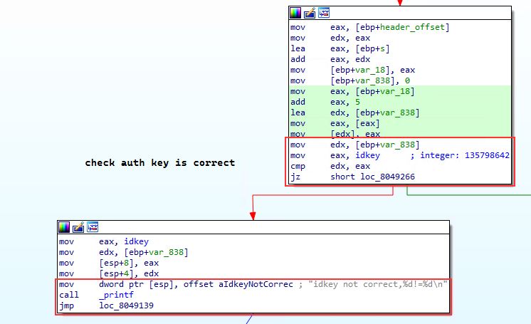 - Checks that the 32 bit symmetric key is correct in order to authenticate the message. The hardcoded value in the binary is